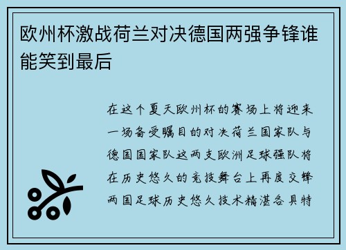 在即将到来的比赛中,福伦丹与乌德勒青年两支球队的较量引发了广泛关注。作为荷甲联赛中的一场重要对决,两队都有着出色的表现和强大的实力。然而,究竟谁能在这场竞争中脱颖而出,将成为球迷们热议的话题。本文将从四个方面进行详细分析,首先是两队的历史背景与战绩,其次是双方的阵容配置以及战术体系,接着探讨近期状态...